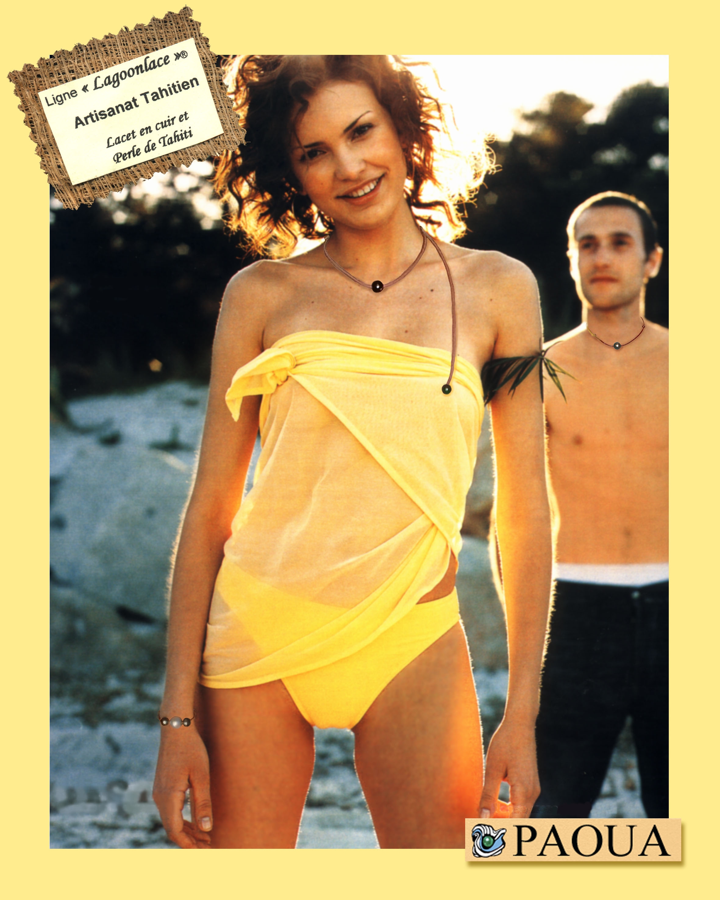 Collection "Lagoon Lace". Collier en cuir pour femme avec 2 perles de Tahiti.